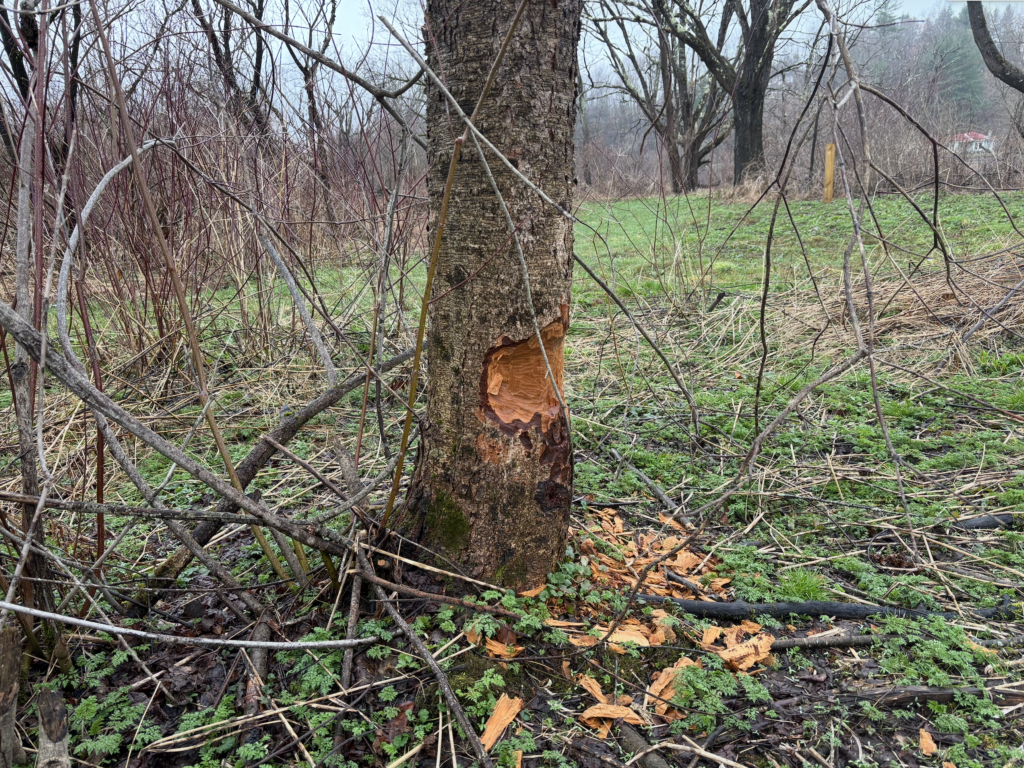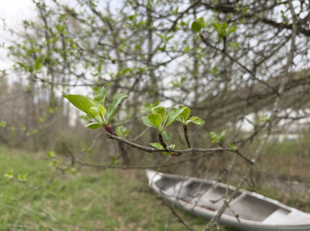 The beavers have added a satellite work station to their staging area. There is a downed tree much further north towards the outdoor classroom. This tree is all alone in a little thicket, and it will either be dragged south to be part of the dam in progress, or used for a new dam, or maybe it’s a spare tree that the beavers have hidden in the undergrowth as an emergency. Nevertheless, those beavers have been hard at work over the winter, just like the rest of us.
