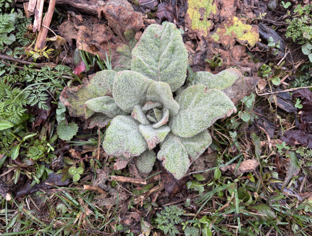 There were the furry, sage green, first year basal rosettes of mullein scattered on the trail, and some new poop: we still have our prolific hunter in the south portion of the trail that for some reason makes it really obvious that they’ve been there, always fertilizing the trail itself. It could be an owl, coyote, or fox, but we won’t find out until we put up a trail cam.