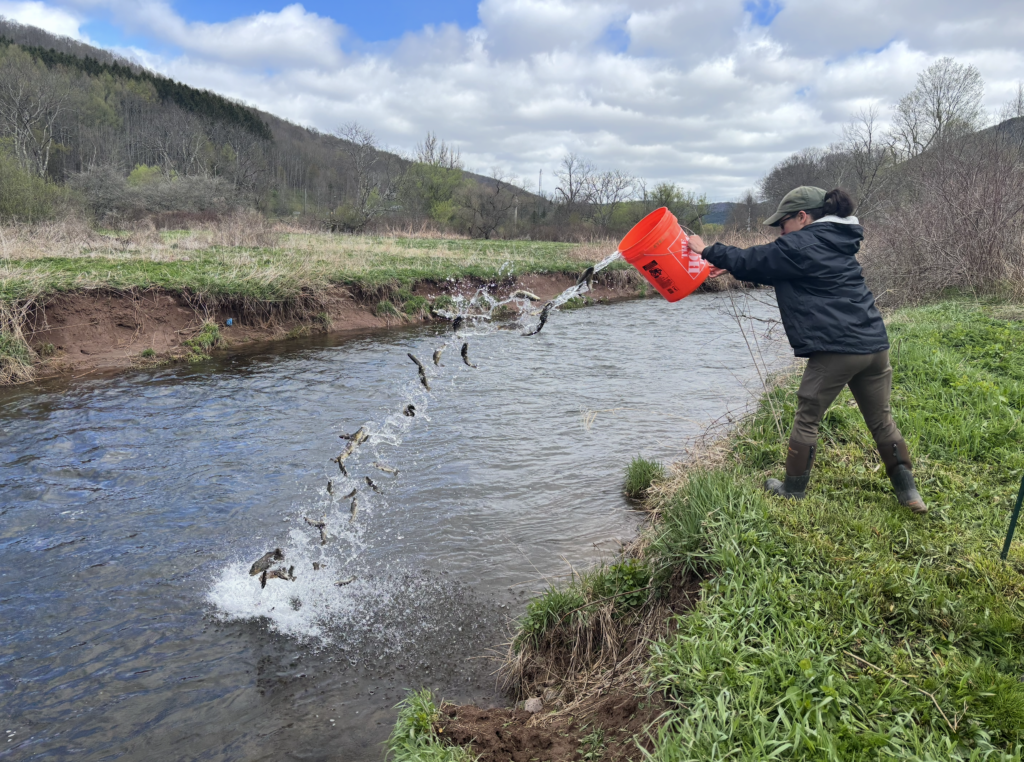 On April 20th, hosted the public to watch the DEC stocking the EBDR river at the East Branch Nature Preserve with 750 brown trout. Last year, the board was approached by the DEC who requested to do the stocking. The board decided to accept and then permit fishing on the Preserve.
