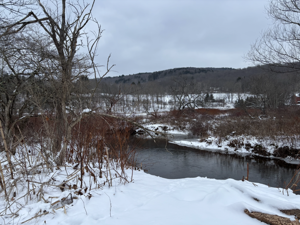 Happy New Year from all at the Catskills Water Discovery Center in Arkville. The East Branch Nature Preserve is open year-round. Please keep your pets on a leash and pack out the poop! Even in the winter, there is still so much to see here. The majestic goldenrod is much faded from its vibrant, glorious yellow to a ghostly husk, and the stately mullein still stands to attention, drained of its color, like a pencil sketch ready to be filled in with some vermillion come spring. The landscape reminds us that we all need to slow down in the winter months, appreciate our wizened selves, and save our seeds for our best work in 2026.