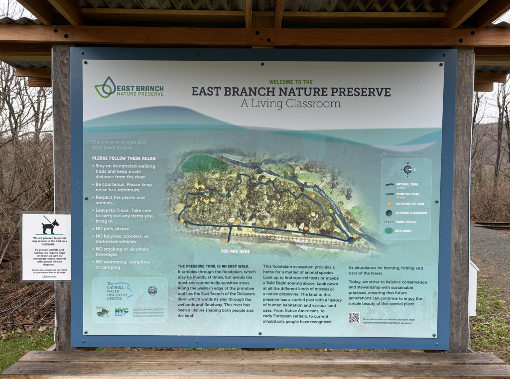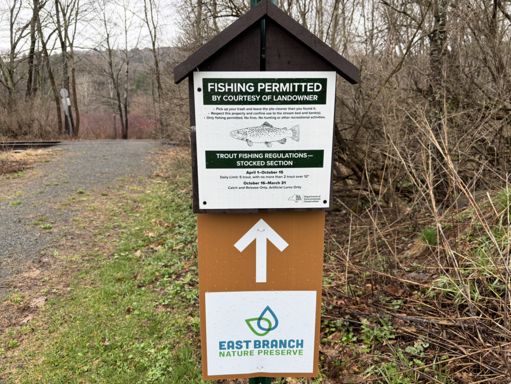 The East Branch Nature Preserve is special for many reasons, but one of them is that the western part of the trail is adjacent to the East Branch of the Delaware River. There’s nothing more calming for the spirit than walking past the river to the sound of rushing water and spring birdsong. The second reason is that fly fishing is permitted in the river from April 1st to October 15th. All visitors to the Preserve have permission to fly fish here. Go here to find out how to get your NYC fishing permit, which is very easy. Anglers are permitted up to five trout to take home and enjoy.